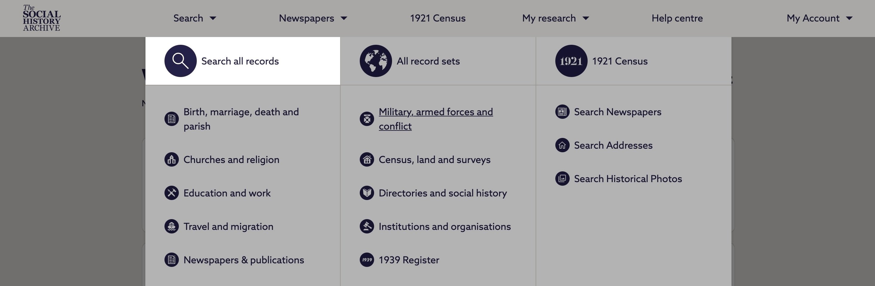 How to search records in The Social History Archive